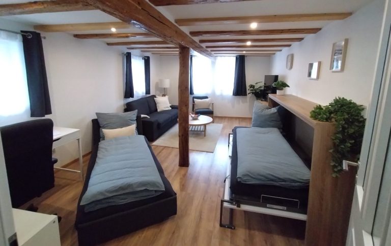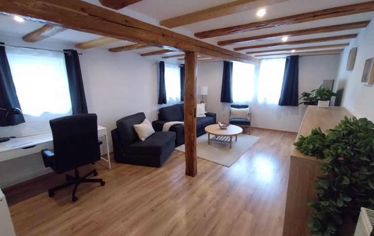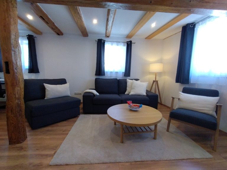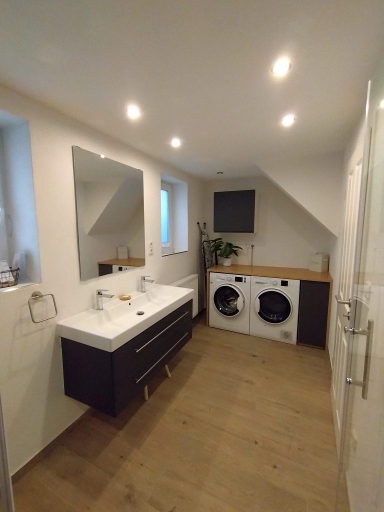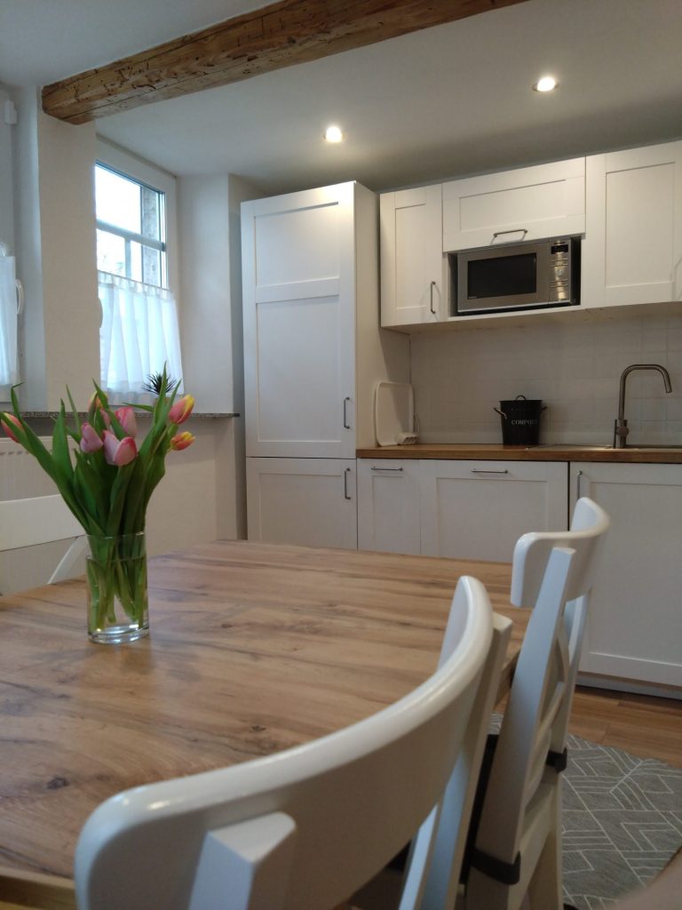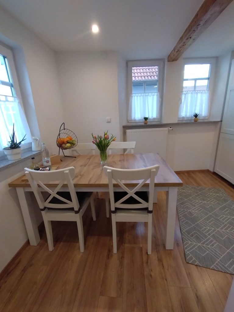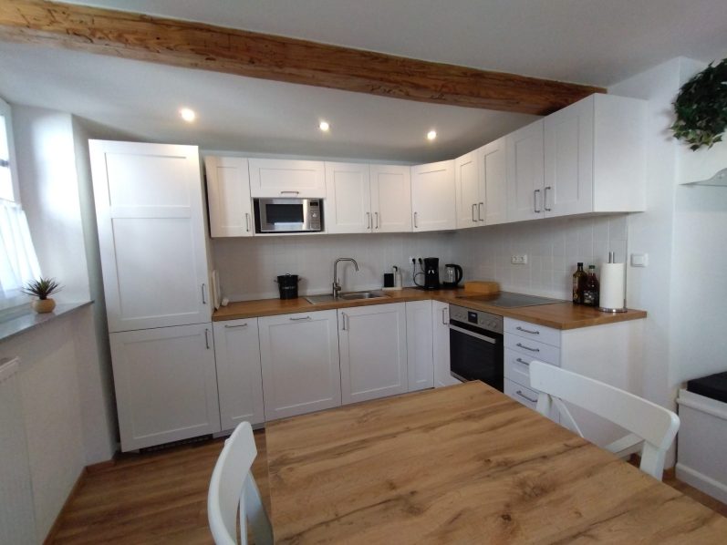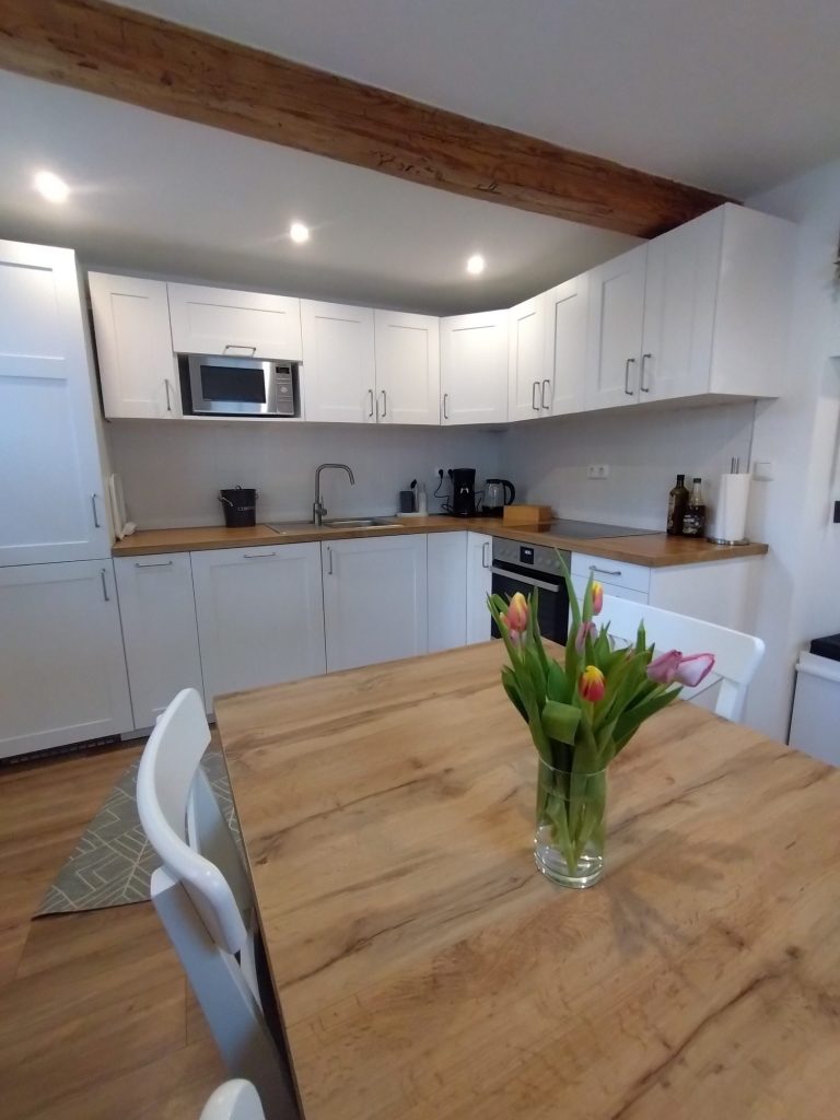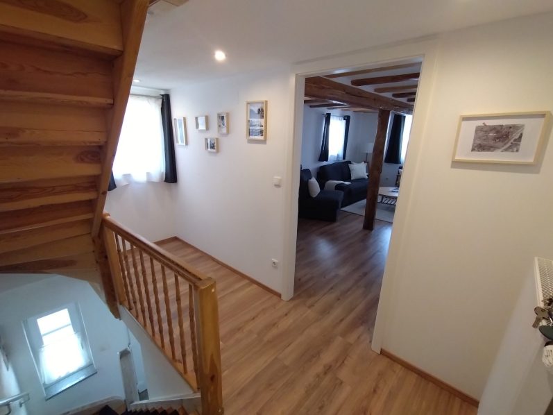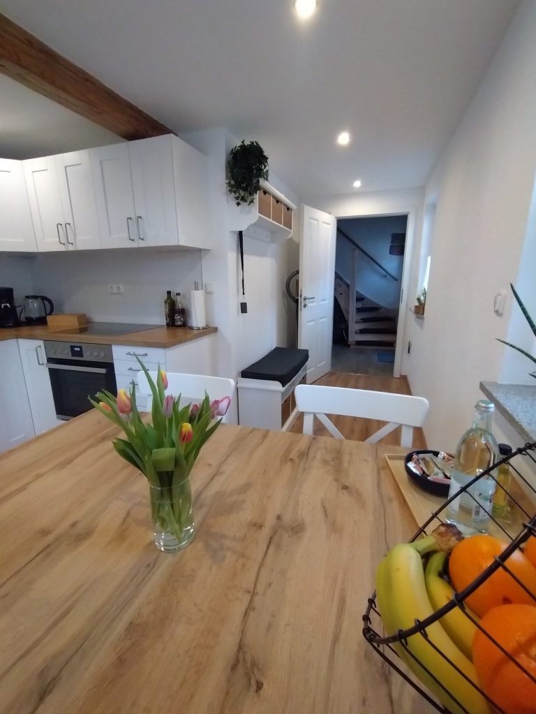 Der Innenausbau unseres Fachwerkhauses wurde 2025 fertiggestellt und vereint modernen Komfort mit dem besonderen Charme historischer Bauweise, während die Fassade aktuell noch weiter verschönert wird.