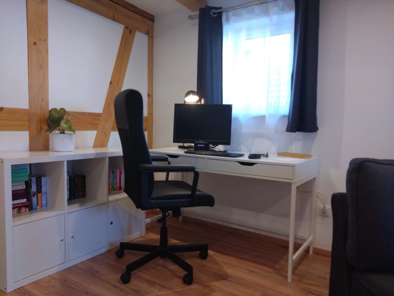 - Ein großer Arbeitsplatz mit 250 MBit WLAN Zugang, separater Tastatur und Maus und auf Wunsch (nach Verfügbarkeit) mit separatem Monitor mit HDMI-Anschluss